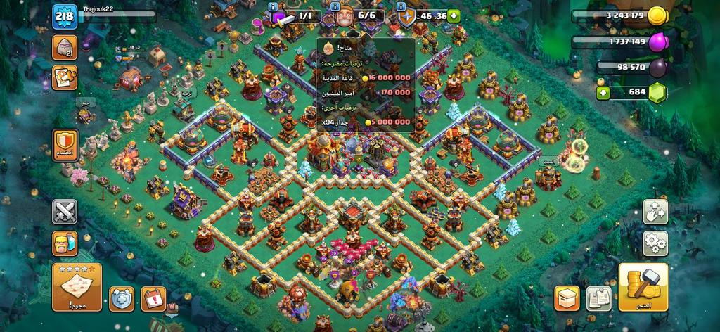 حساب تاون هول 16 فاخر للبيع من متجر كلاش اوف كلانس! ملك وملكة متساويين 95 - توازن مثالي للهجمات! ميزة نادرة: تغيير الاسم مجاني - سمّي حسابك كما تريد بدون أي تكلفة! مستوى عالي 218 مع آمر 70 وجواهر 684. حساب مثالي للاعبين من جميع أنحاء العالم: دول الخليج العربي، مصر، المغرب، الجزائر، تونس، ليبيا، السودان، العراق، الأردن، فلسطين، لبنان، سوريا، اليمن. Premium TH16 Clash of Clans account with equal King and Queen 95 plus FREE name change! سعر 335 ريال مع ضمان كامل وتسليم فوري!